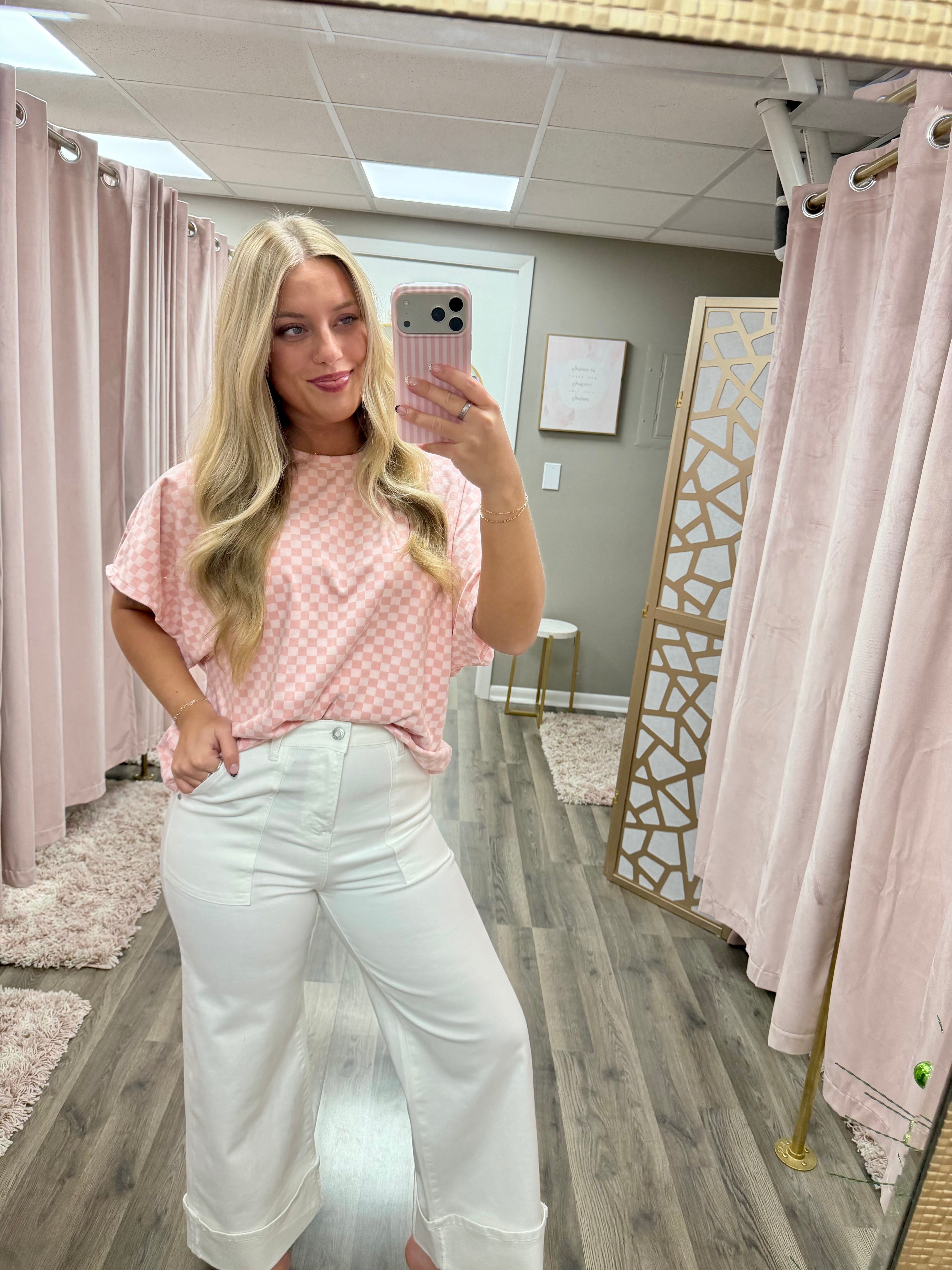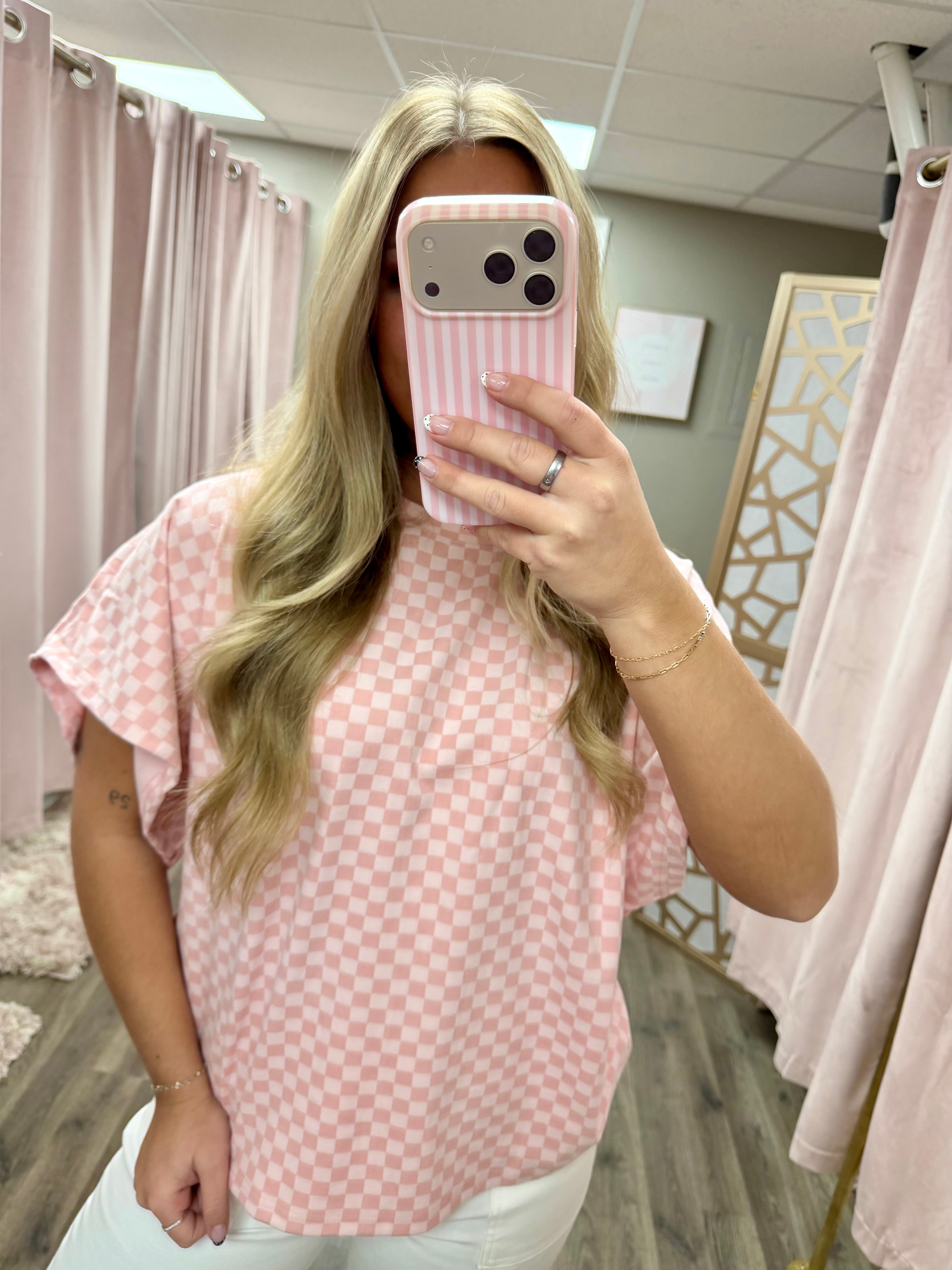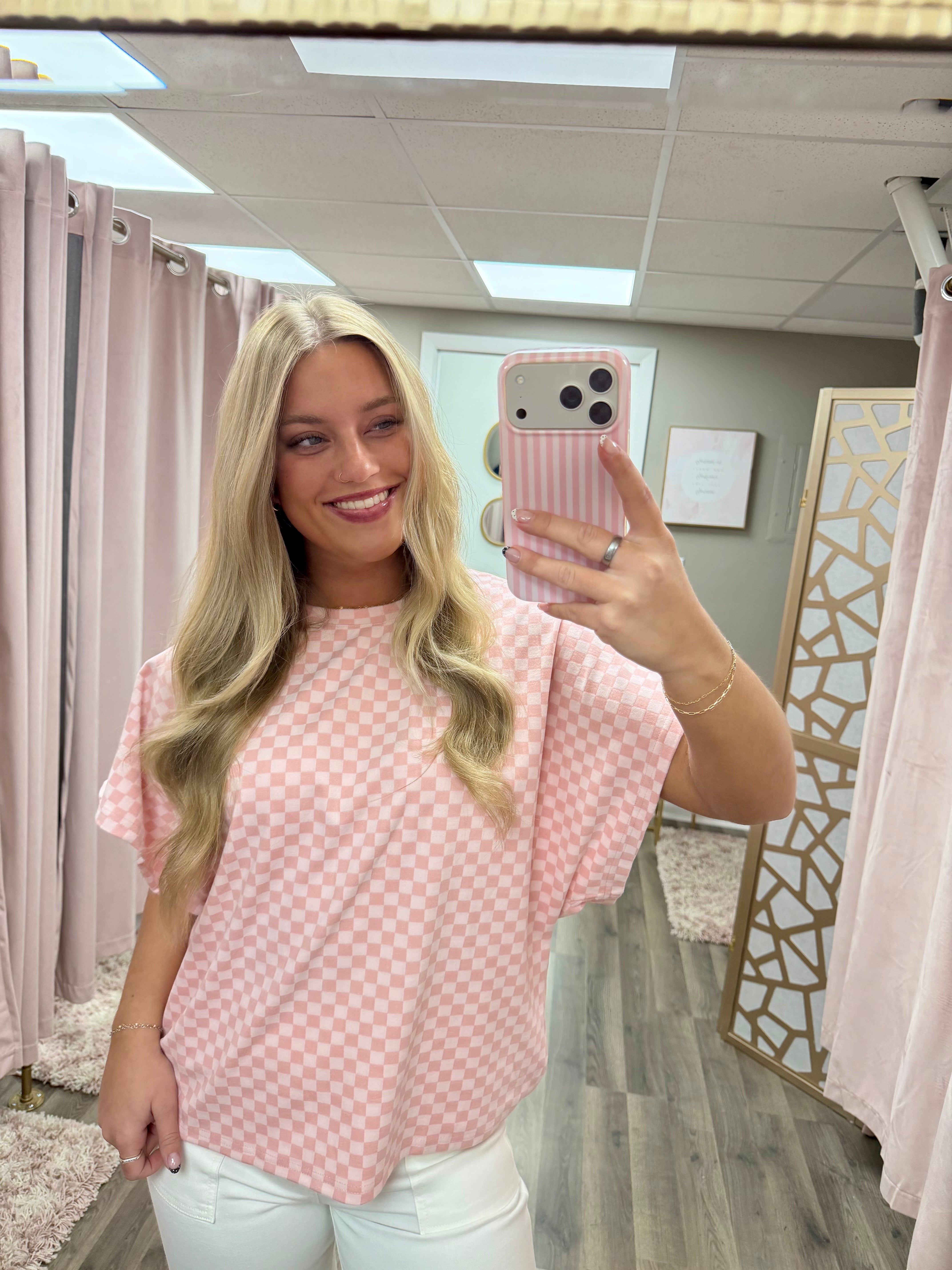 Checker Dolman Sleeve Knit Top
