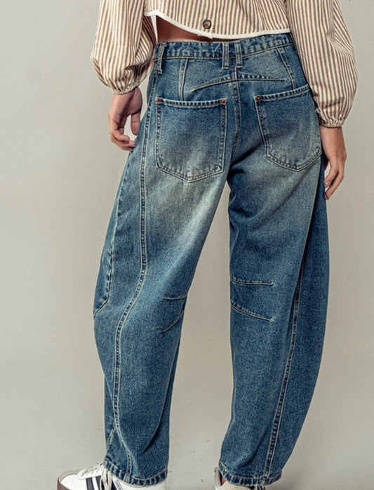 Distressed Barrel Jeans