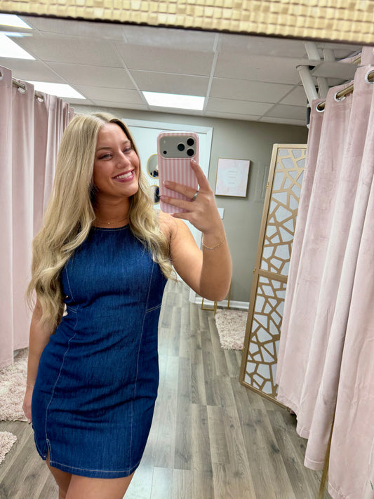 Round Neck Sleeveless Denim Dress