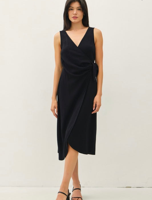 Linen Blend Wrap Midi Dress