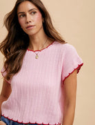 A modern twist on a cozy classic. Designed with a flattering silhouette and crafted from soft, breathable knit fabric, this top features striking contrast accents at the neckline, cuffs, or hem for a pop of visual interest. Perfect for layering or wearing on its own, it effortlessly blends comfort with refined edge, making it an ideal pick for both casual outings and dressed-up days.