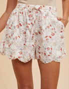 Bring a playful touch to your warm-weather wardrobe with these embroidered floral print shorts. Designed with vibrant floral embroidery over a soft, breathable fabric, they blend charm and comfort effortlessly. The relaxed fit, elastic waistband, and subtle detailing make them an easy go-to for sunny days.