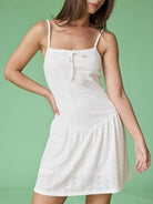 Effortlessly chic and delicately detailed, this knit lace trim mini dress is your go-to for understated elegance. Crafted from a soft, stretchy knit fabric, it hugs your curves in all the right places while offering all-day comfort. The lace trim adds a romantic, feminine touch at the neckline, elevating the minimalist silhouette.
