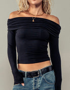 This off-the-shoulder slim-fit top is a stylish and feminine choice for any occasion. Crafted from a soft, stretchy fabric, it hugs your curves while providing a comfortable fit. The flirty off-the-shoulder neckline adds a touch of allure, showcasing your shoulders beautifully. With its sleek design and flattering silhouette, this top is perfect for dressing up with a skirt or keeping it casual with jeans.