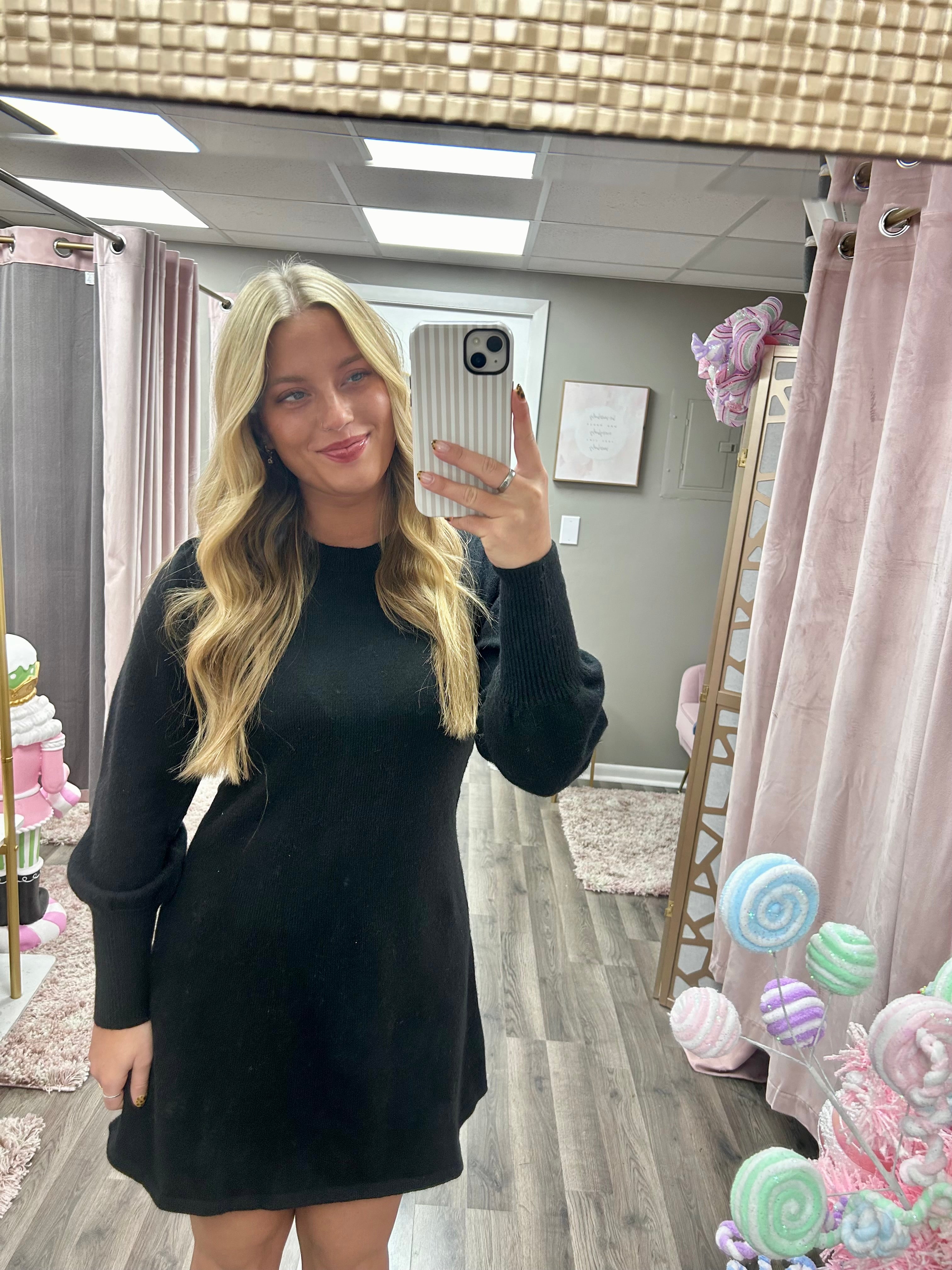 Puff Sleeve Mini Sweater Dress