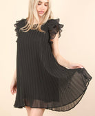 Flirty and flattering, this woven pleated mini dress brings playful elegance to any occasion. Crafted from lightweight fabric, it features a loose bodice that flows into a breezy, pleated skirt for effortless movement. Perfect for brunch dates, garden parties, or a night out."