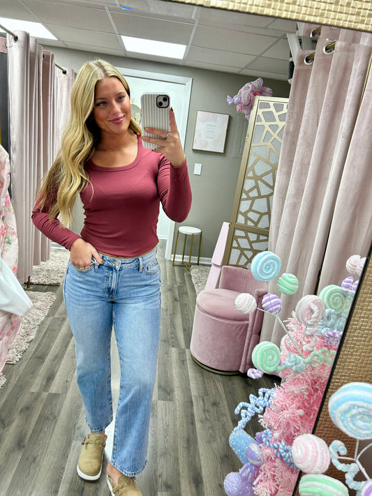 Risen Mid Rise Straight Cuffed Jean