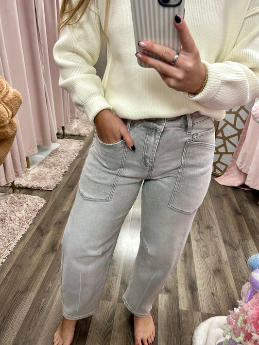 Risen Mid Rise Barrel Leg Jean W/ Pocket Detail