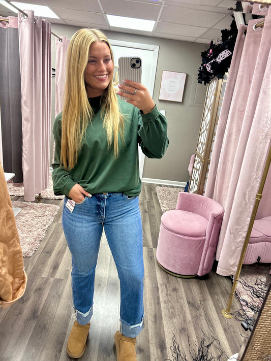 Risen High Rise Straight Cuffed Jean