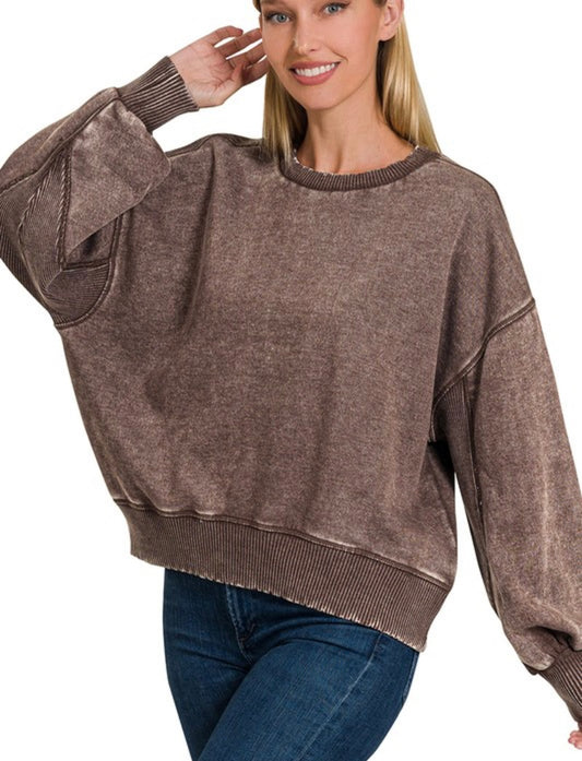 Acid Wash Fleece Oversized Crewneck