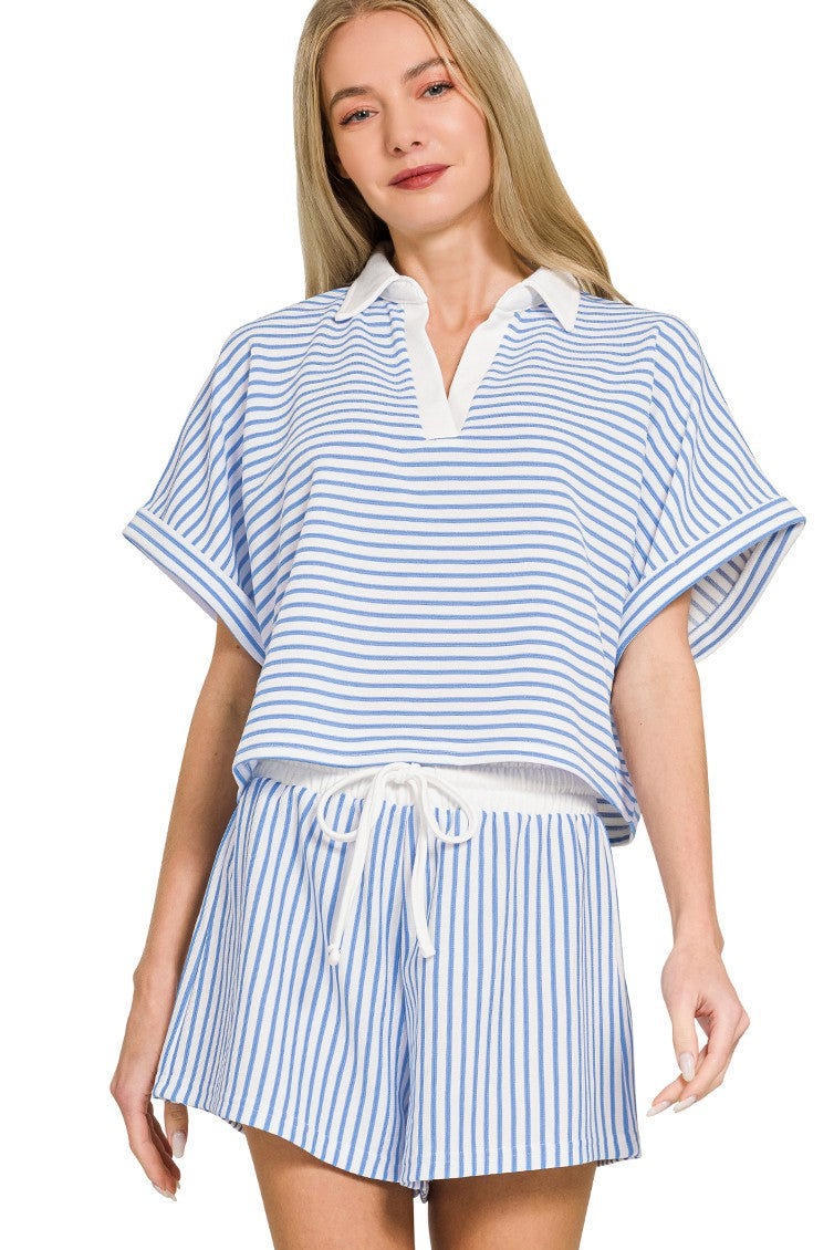 Striped Collared Top & Short Set