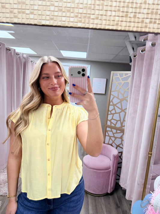 Ruched Ruffle Sleeve Button Down Top