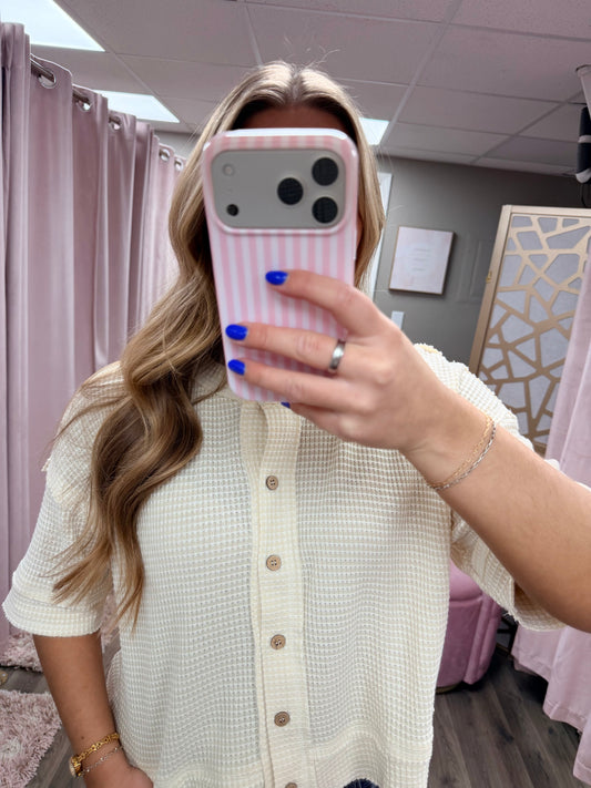 Waffle Knit Button Down Short Sleeve
