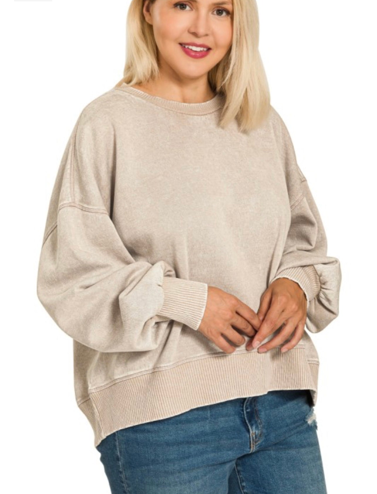 PLUS ACID WASH FLEECE OVERSIZED PULLOVER