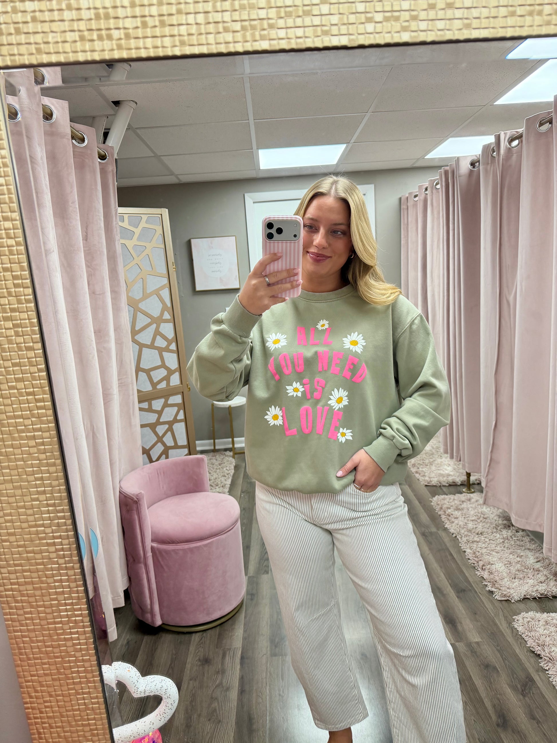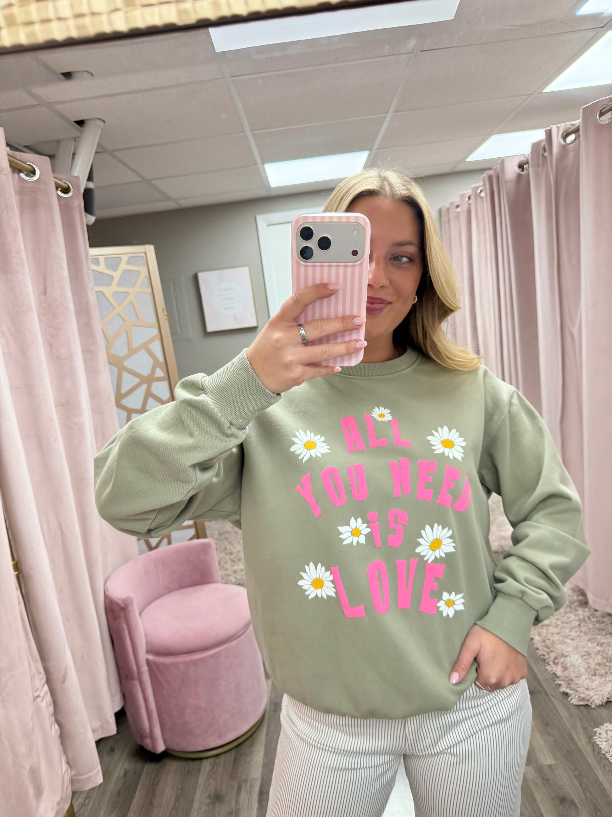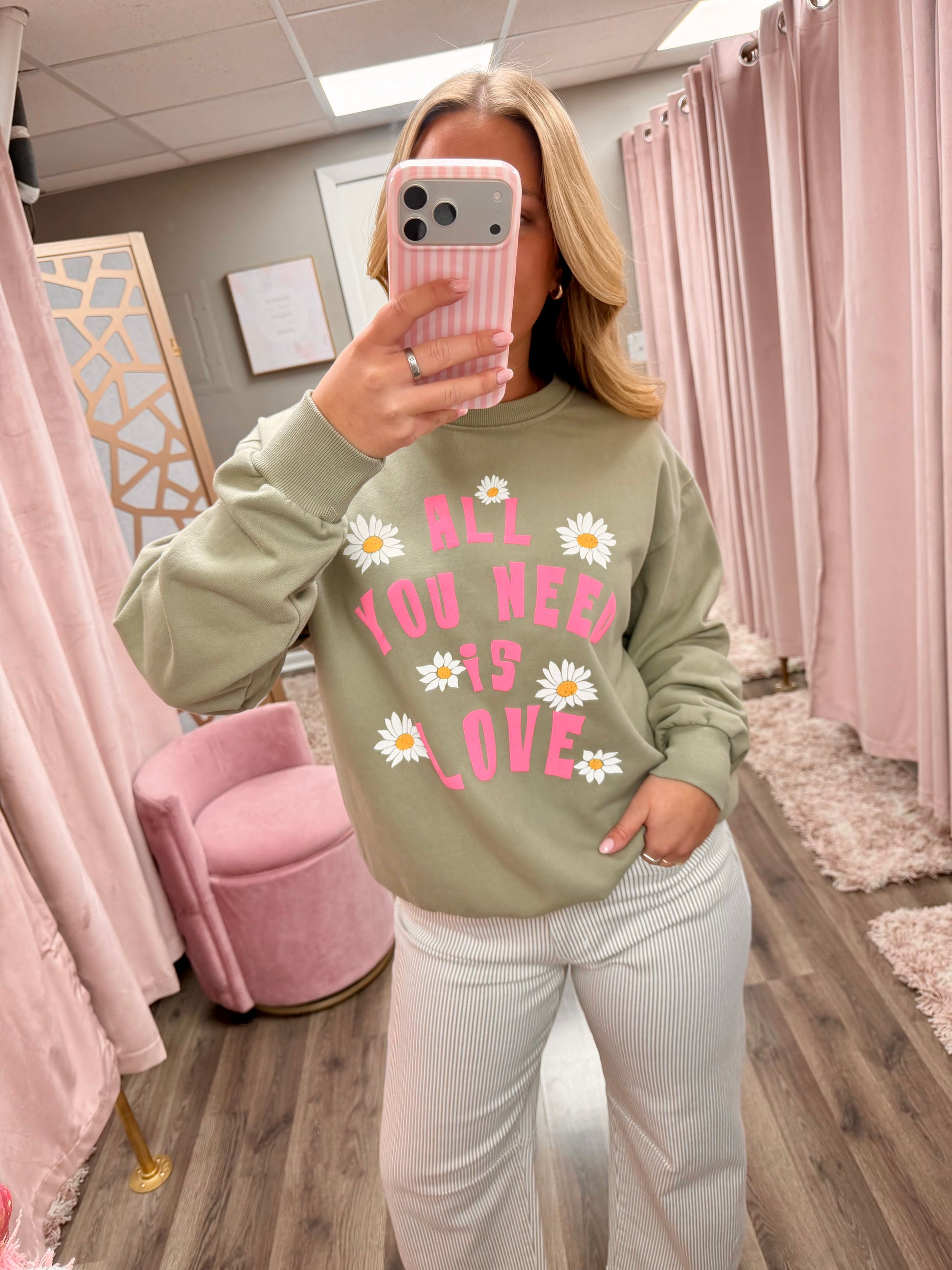 ALL YOU NEEDS IS LOVE GRAPHIC BRUSHED SWEATSHIRTS