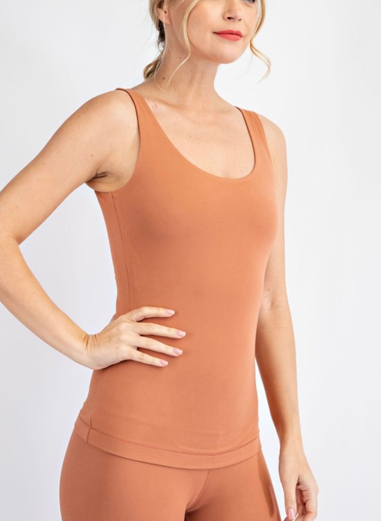 The epitome of comfort and style combined! This tank top is crafted from the softest and most luxurious buttery fabric, offering a heavenly feel against your skin. The full-length design provides extended coverage, making it a versatile piece that can be worn on its own or as a base layer for various outfits.