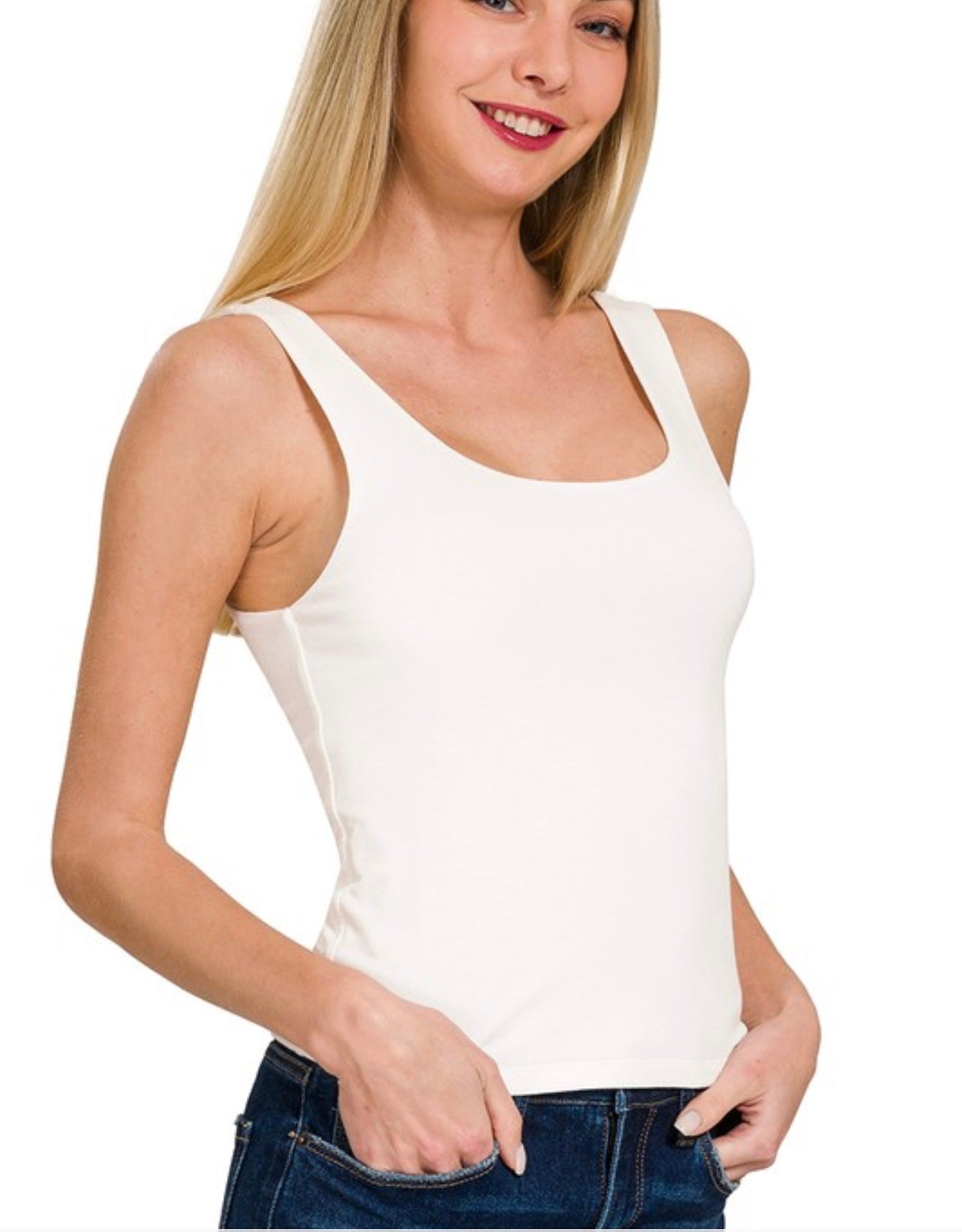 A double layer round neck tank is a chic and practical addition to any wardrobe, offering both comfort and style. This tank top features a unique double-layer design, providing extra coverage. The round neckline adds a classic touch, making it versatile for various occasions, from casual outings to more dressed-up events.
