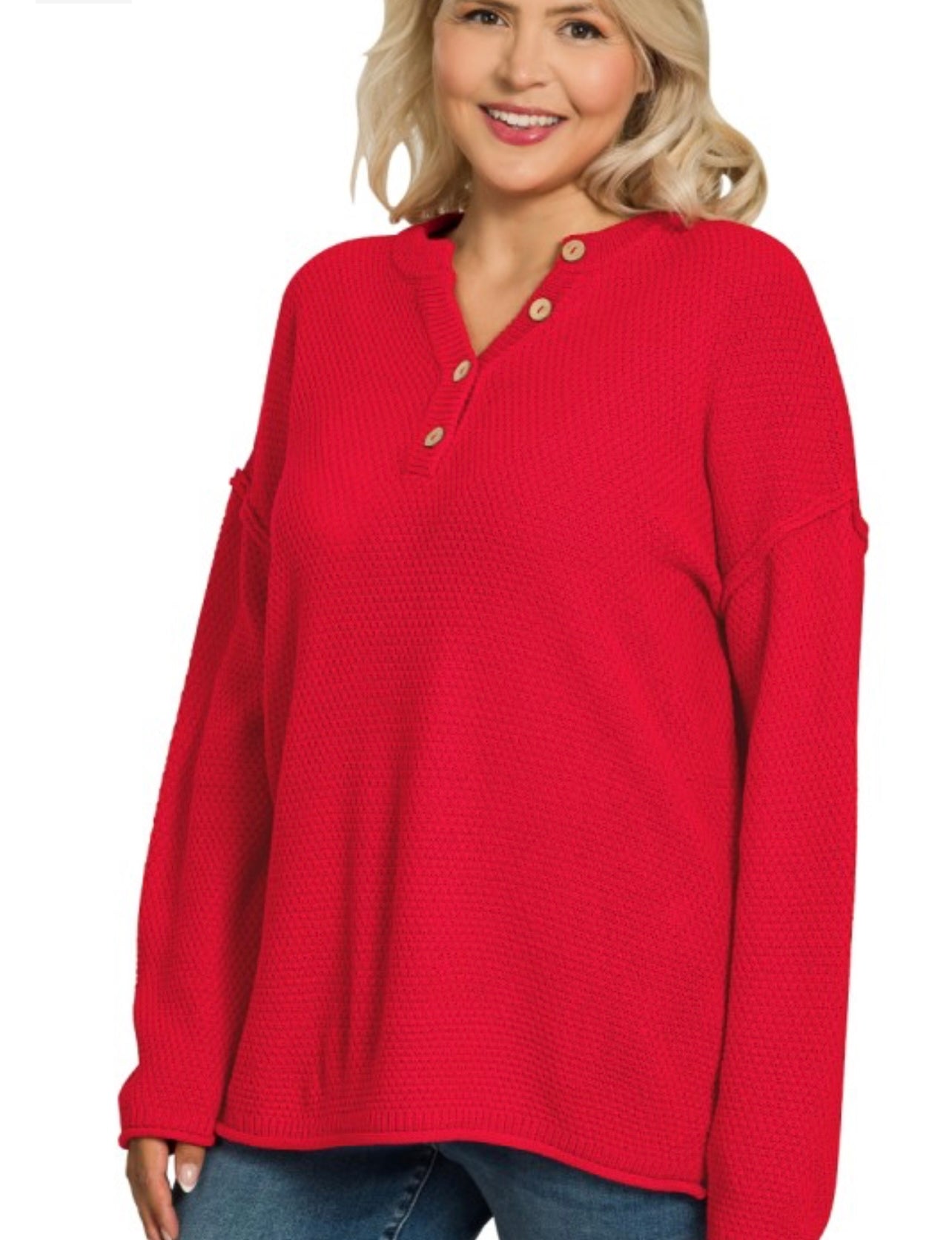 PLUS 4 BUTTONS HENLEY NECKLINE BASIC SWEATER
