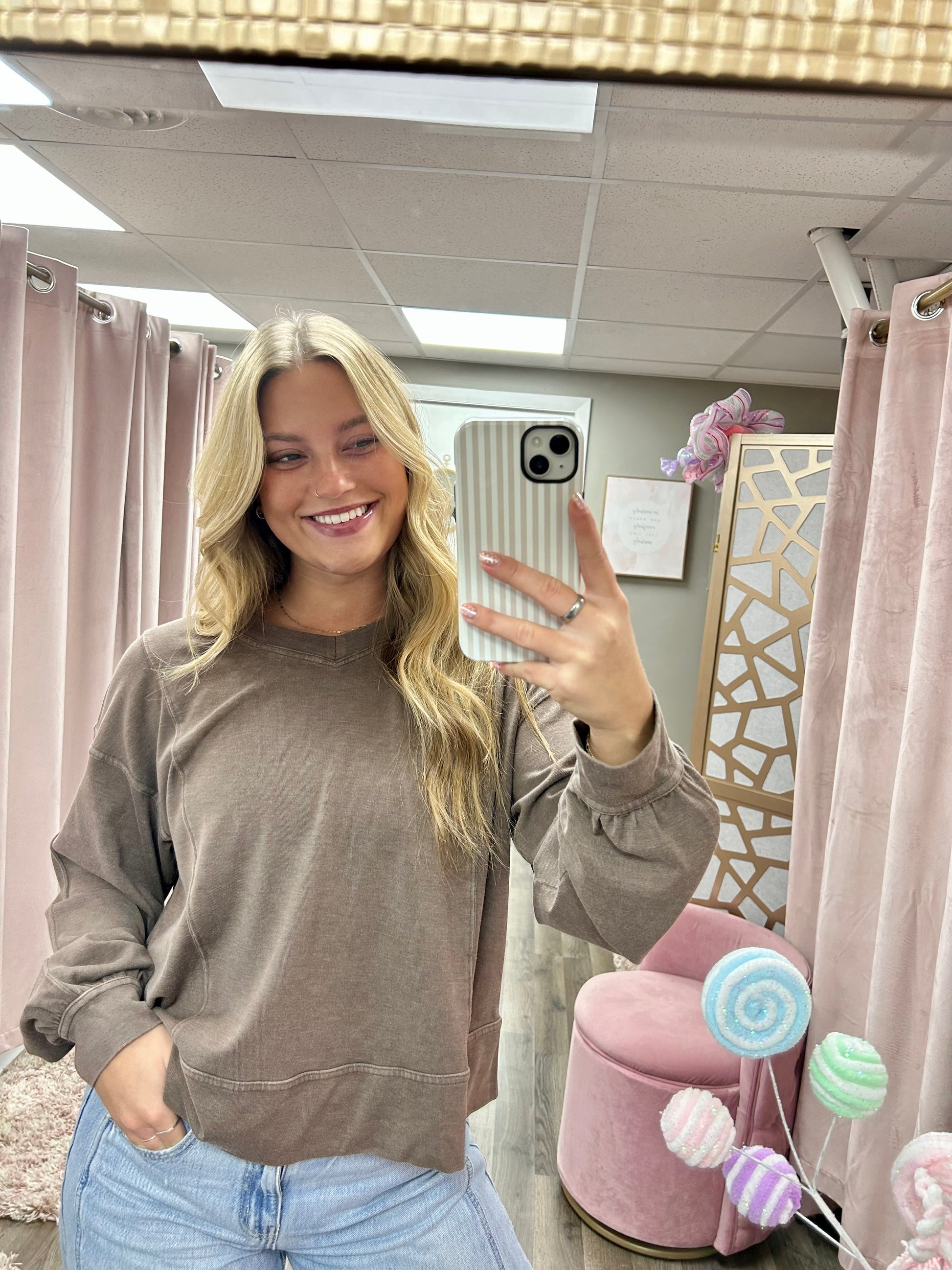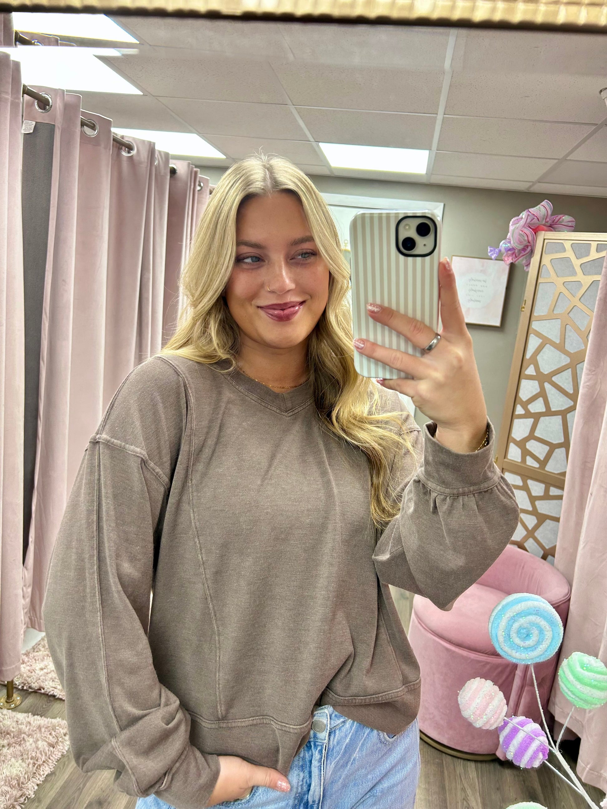 Mineral Washed V Neck Top