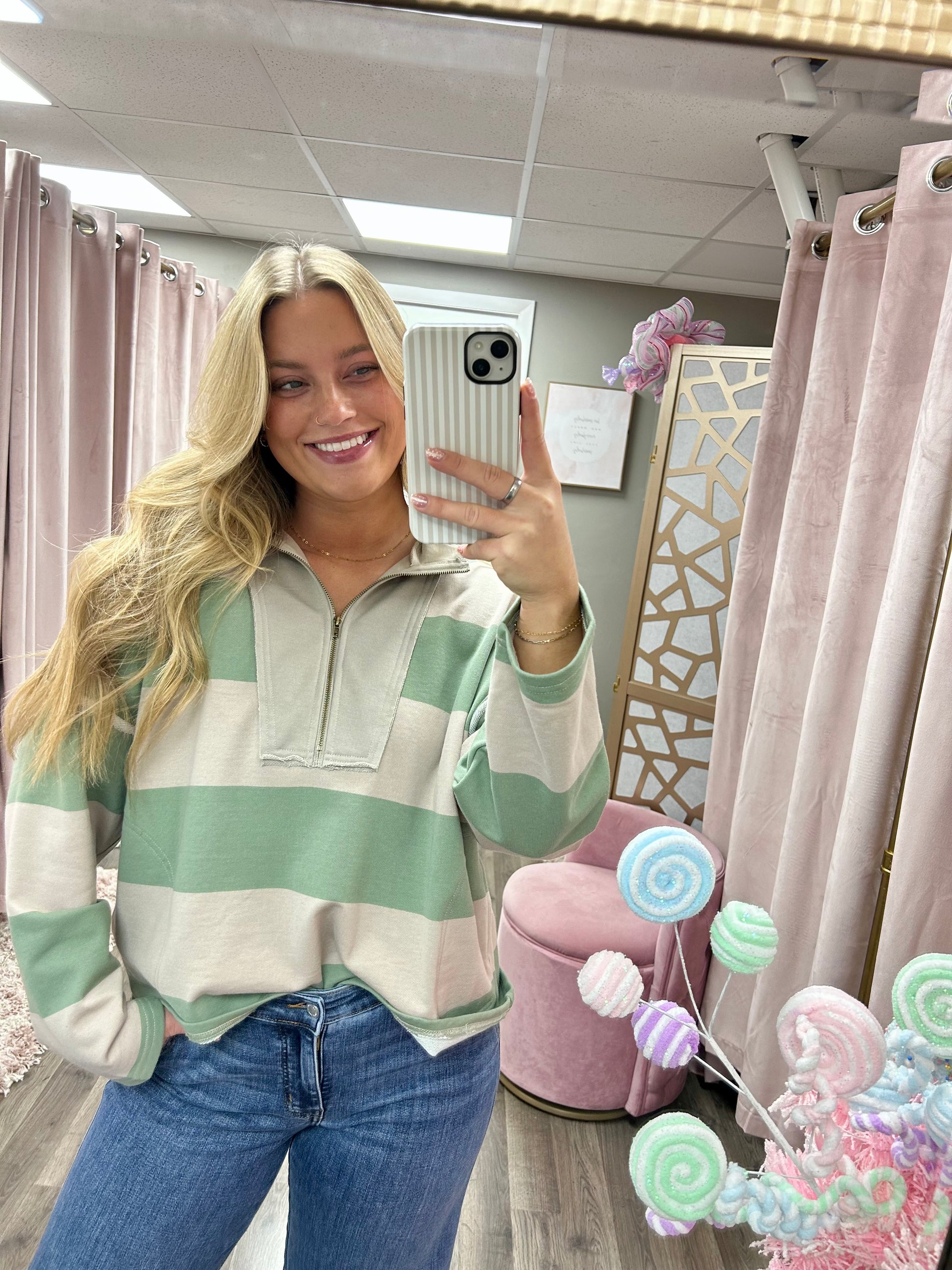 VINTAGE STRIPED TOP WITH FRONT ZIP WITH POCKETS