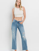 High Rise Distressed Slim Wide Jeans
